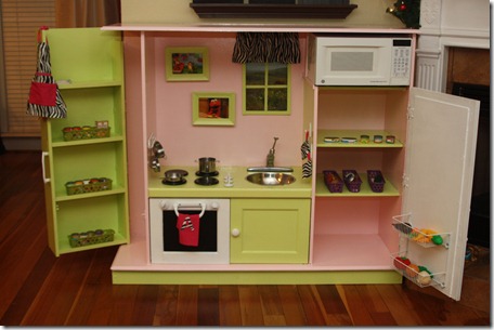 I was looking at kitchens for Addie, and didn’t want to settle for just anything. I wasn’t a big fan of the plastic play kitchens, and the wooden ones seemed like a LOT of money for not a lot of kitchen. So, as I was researching online, I came across a blog for a Do It Yourself kitchen. It showed how to make a kitchen out of an old TV entertainment center. Well, that was it. Addie NEEDED that one. I, of course, am not crafty. Luckily, Granddaddy is! I sent him some links, and he and GiGi got to work. It turned out AMAZING!!! Addie LOVES it (as do ALL her friends!)!! She is in her kitchen cooking EVERY single day. It was BY FAR her FAVORITE Christmas present this year!! So, THANK YOU, GiGi and Granddaddy, for being the BEST Grandparents EVER!!